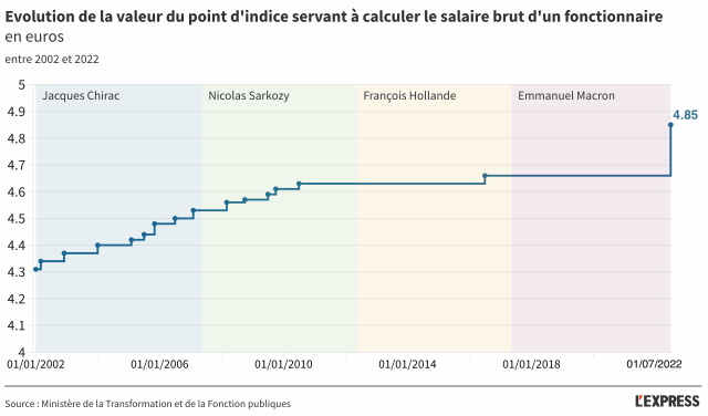 Le fait qui compte. Le point d’indice de la fonction publique, qui sert à calculer le salaire brut d’un fonctionnaire, est revalorisé pour la première fois depuis le 1er juillet 2017 sous François Hollande.
