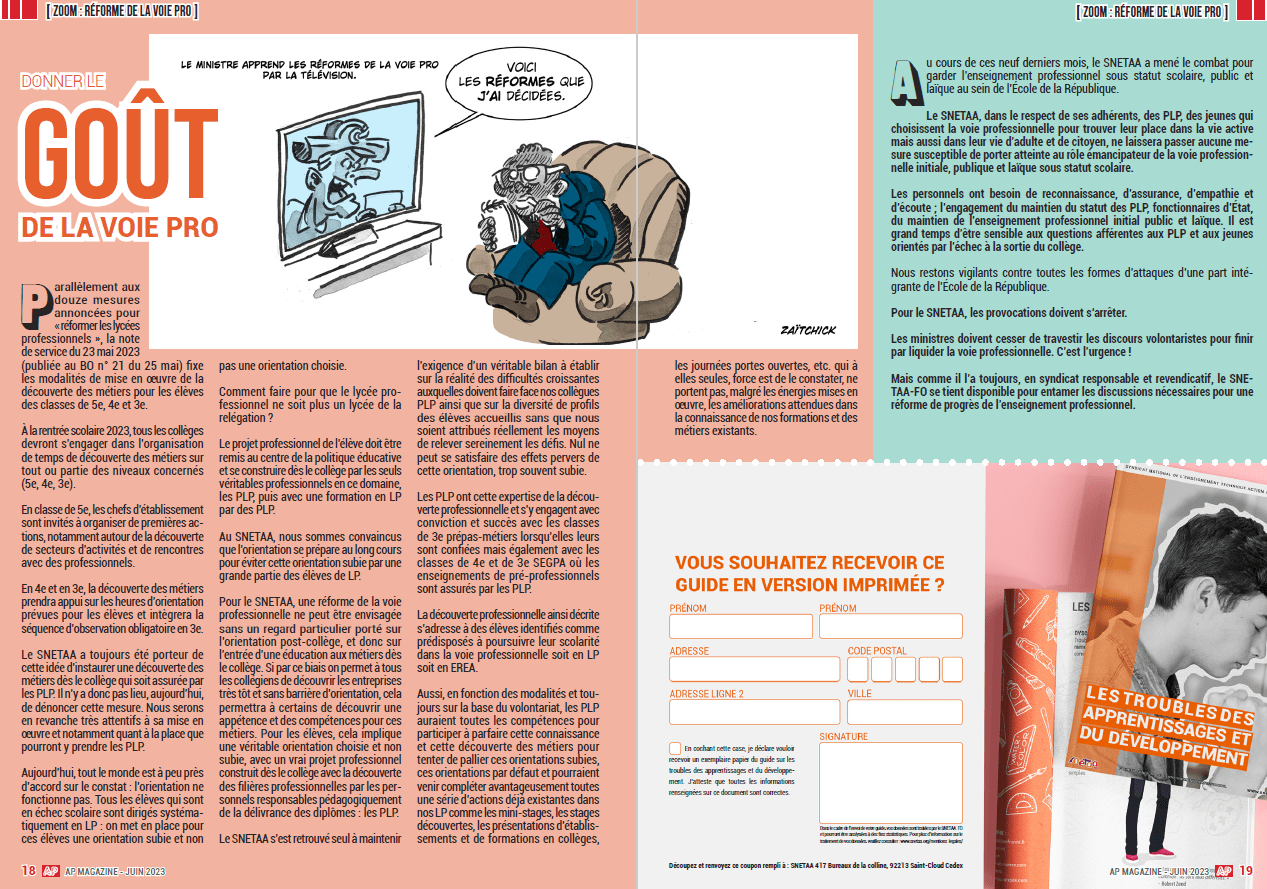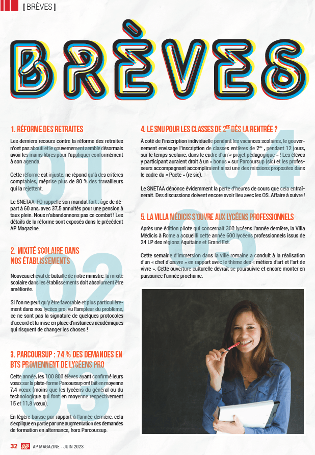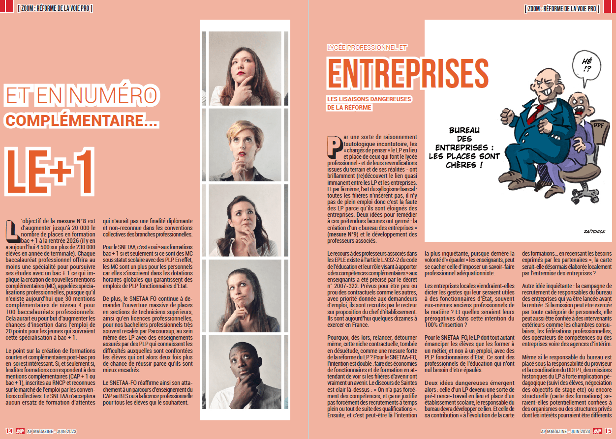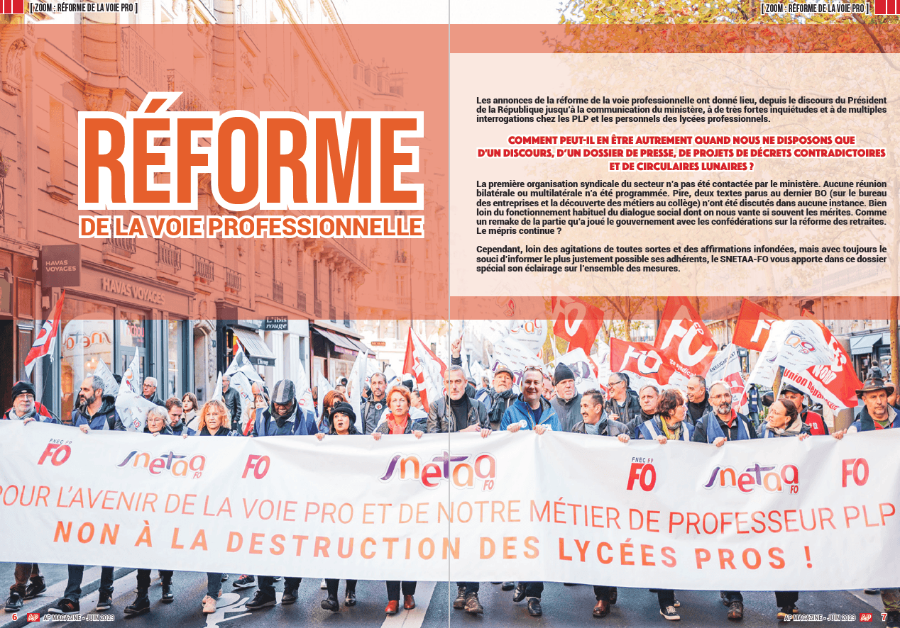 Dans ce numéro spécial « réforme de la voie professionnelle », le SNETAA-FO présente les mesures annoncées et les problèmes prévisibles, et plus encore.