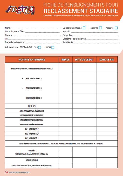 Le SNETAA-FO, avec l’aide de sa fédération la FNEC-FP-FO, se bat également contre la réforme de la fonction publique qui alourdit nos obligations de services, qui rompt avec le principe d’égalité de traitement et met en péril nos statuts par un recours accru au personnel contractuel recrutés à l’avenir par les chefs d’établissements (CE) avec la généralisation annoncée par le président de la république de l’expérience marseillaise de l’école du futur et par la gestion individuelle des carrières et des rémunérations.