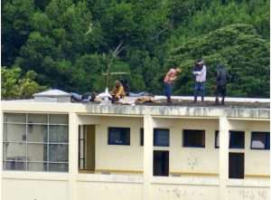 Émeutiers armés squattant depuis 6 jours le toit du LP Attiti