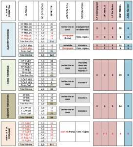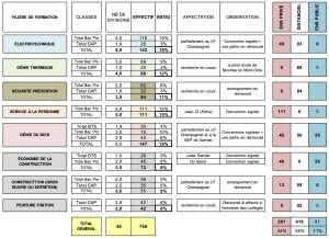 Cette année à la rentrée de février, il y avait 824 élèves au LPPA, puis ce chiffre est descendu à 780 élèves fin mars, et il était de 758 à la mi-mai (soit une baisse de 8 % en 4 mois) , répartis ainsi :