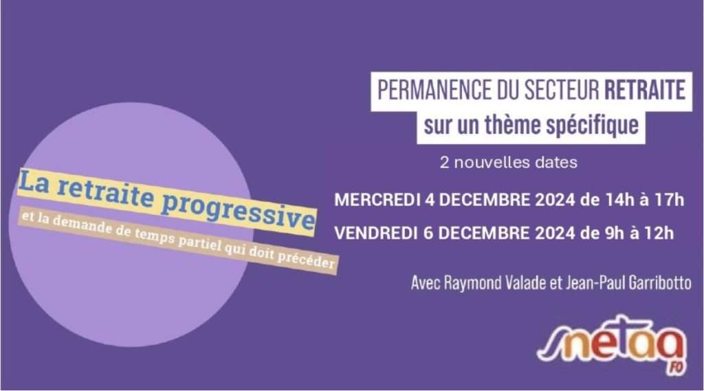 Vous avez manifesté votre intérêt pour la permanence « organiser sa retraite progressive » du jeudi 5 décembre.