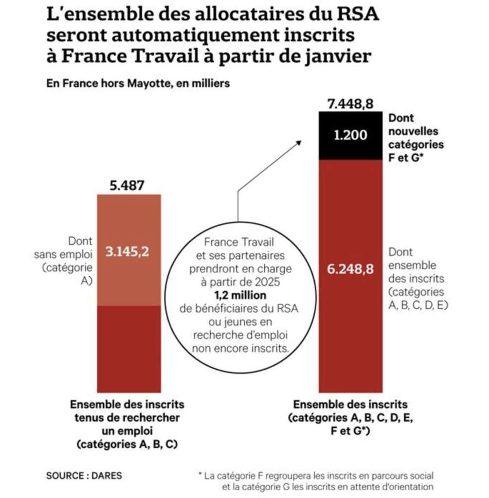 Le chômeur n’est donc plus, comme auparavant, synonyme de « demandeur d’emploi actif ». France Travail a opté pour une vision plus « néolibérale » de la notion de chômeur. Avec l’inscription automatique à France Travail de 1,2 million de personnes actuellement hors des radars (qualifiée abusivement par France travail de « demandeurs d’emploi »), les statistiques du chômage devraient évoluer sensiblement en France. Pour le gouvernement, cette réforme est essentielle pour améliorer la mesure du chômage et le service public de l’emploi.