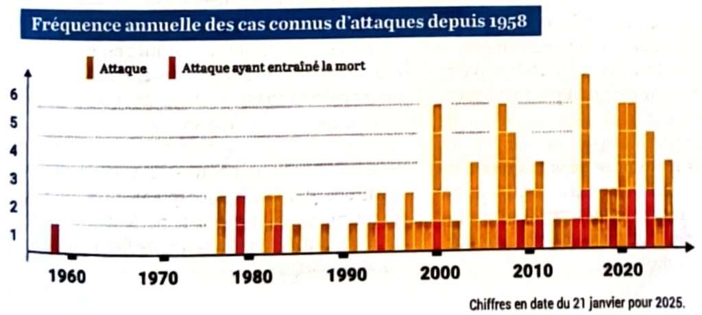 L’hebdomadaire DNC vient de publier un article qui confirme que la fréquence des attaques de requin augmente singulièrement en Nouvelle-Calédonie.