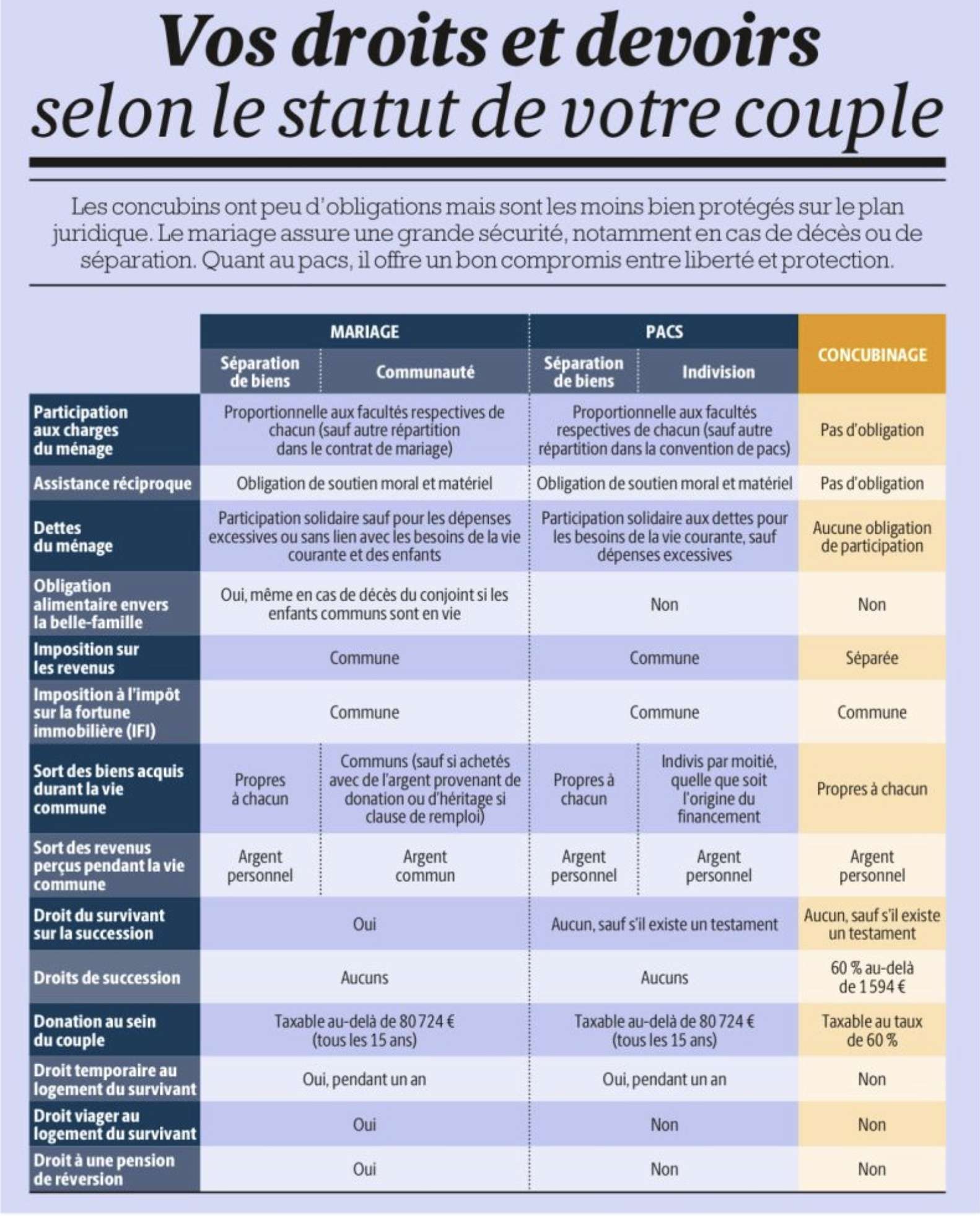 ➡️ Mariage, PACS, concubinage : chaque option a ses avantages, mais aussi ses limites.