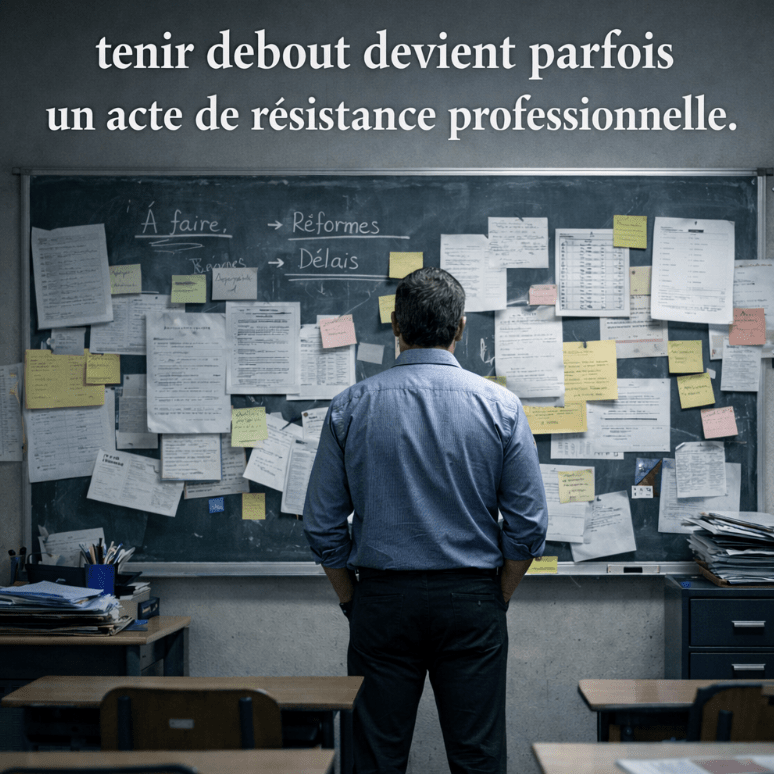 Hier, il fallait rappeler que l’École doit former le jugement, pas le réflexe. Aujourd’hui, il faut regarder ce qui se passe quand, dans une institution fragilisée, ceux qui nomment le réel dérangent plus que les dérèglements eux-mêmes. Alors tenir debout cesse d’être une simple attitude professionnelle : cela devient déjà une forme de résistance.